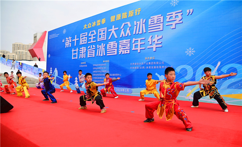 1月18日,“第十届全国大众冰雪季”甘肃省冰雪嘉年华在兰州新区拉开帷幕。本次冰雪嘉年华以“大众冰雪季 健康陇原行”为主题,推出短道速滑、“万名学生逐冰嬉雪”等项目和雪地拔河、滑雪圈等系列主题娱乐项目。新甘肃·甘肃经济日报记者 瞿娟 摄