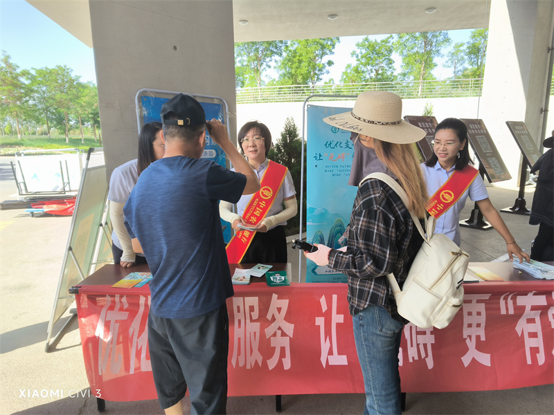 为认真贯彻落实国务院办公厅《关于进一步优化支付服务提升支付便利性的意见》,践行“金融为民”理念,进一步做好重点群体的支付服务工作。6月14日,农行嘉峪关分行前往嘉峪关关城景区游客服务中心开展了优化支付服务集中宣传活动。积极向景区游客普及优化支付服务政策、介绍常见的支付诈骗手段及防范措施等,有效提升社会公众享受现代化支付服务的获得感和幸福感。