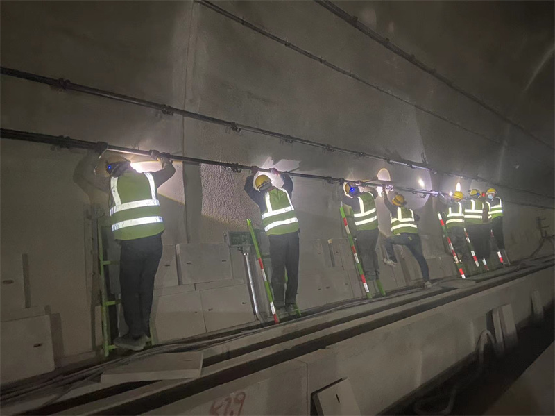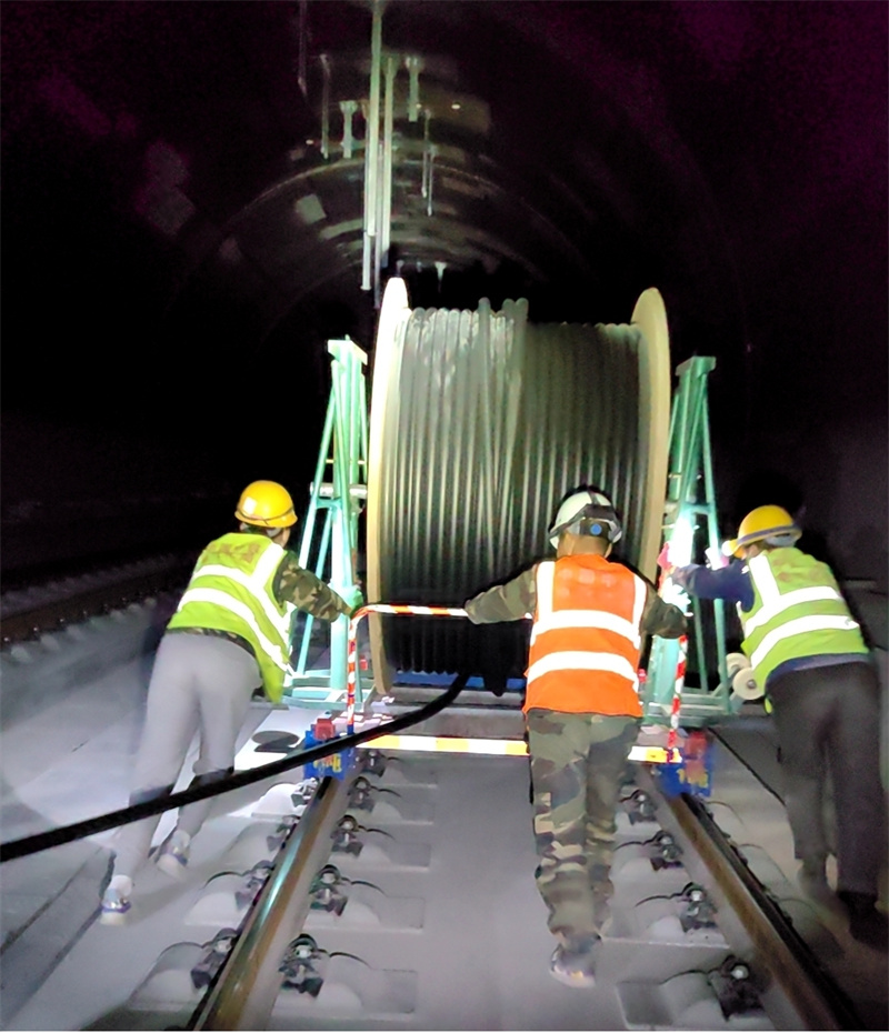 “横越乌岭天下殊,敢叫众山变通途。”新乌鞘岭隧道全长17.13公里,是兰张高铁沿线最长的隧道,有着“中国地质博物馆”之称,堪称“咽喉”工程。由于高寒缺氧、昼夜温差大、地质与水文条件复杂,冬季施工期长达4个月,给通信网络建设带来了严峻挑战。武威铁塔的施工人员只能带上干粮进入隧道,一干就是一天,几百公斤重的物资只能靠人力一趟一趟搬进来,再一米一米地装上去。