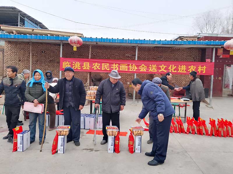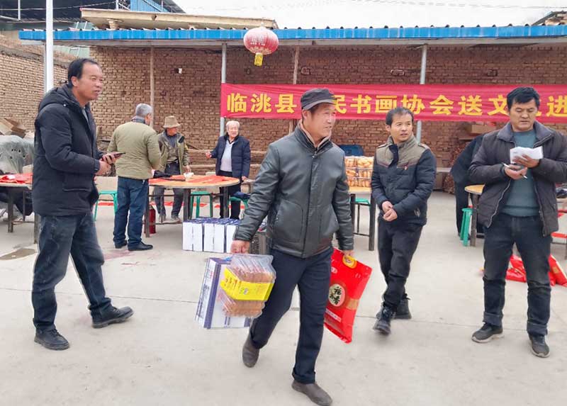 立春时节,天气寒冷,但下杜家村广场暖意浓浓、处处洋溢着欢声笑语。活动邀请甘肃省老子文化研究会常务理事、临洮县老子文化研究会会长杜录川及11名书法家为大家现场写春联、送春联,一副副承载着新年祝愿的春联在方寸条幅之间传递着温暖和关怀。浓浓的祝福洋溢在字里行间,书法家们现场书写460副春联,受益群众280户。