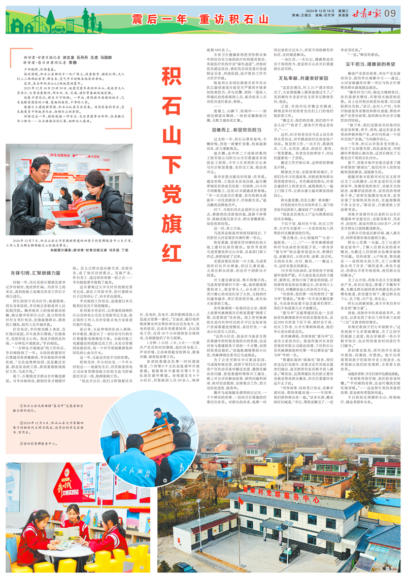 一年来,积石山有很多受灾群众,经历了从惊慌失措,到迅速稳定,再到满怀希望的心路历程,这背后倾注了无数党员干部的无私付出。