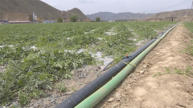 大芦镇硒砂瓜种植历史悠久,目前种植面积达2.5万亩,是当地农民的主要经济来源之一。“以前浇水全靠老天爷和大水漫灌,每逢干旱年份缺水,瓜长得就不好,而且肥料撒下去好多都浪费了。”庄口村瓜农魏学森大爷如是说,脸上满是对过去种植方式的无奈。