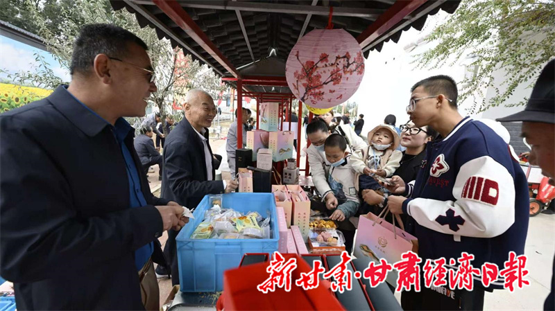 本次活动以“庆农业丰收·享美好生活”为主题,全方位展现兰州新区农业农村发展新成就与乡村振兴新面貌,为群众打造了一场集农产品展销、文化展演、美食品鉴于一体的金秋盛会。活动现场设置多个特色展区与互动体验区,新区自产的红黄圣女果、白黄瓜、贝贝南瓜、人参果等新鲜果蔬整齐陈列,甘肃传祁乳业的醇香牛奶、酸奶备受青睐;杏皮茶、玫瑰鲜花饼、兰州甜百合酥等风味美食吸引众多市民驻足品尝,浓浓的乡土气息与美食香气交织,尽显丰收韵味。