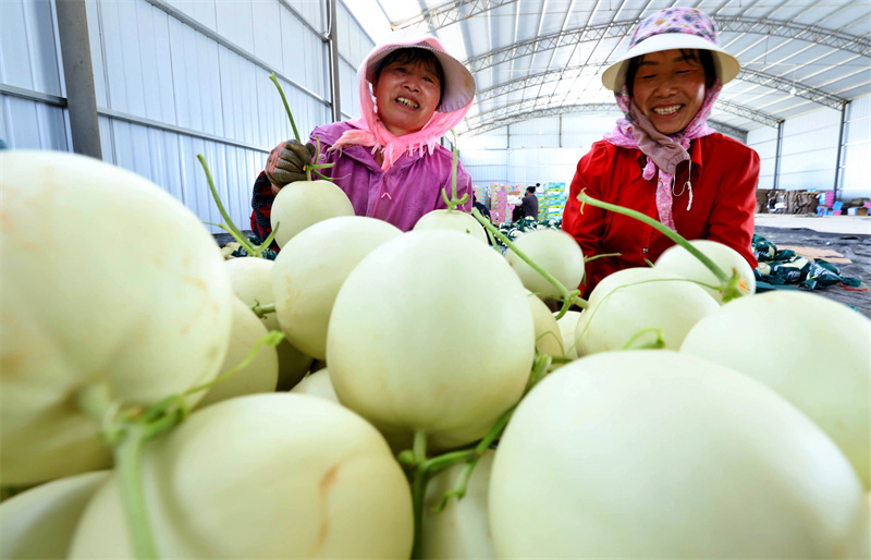 金秋时节,高台县南华镇胜利村千亩辣椒示范基地里,辣椒挂满枝头,村民们忙碌采摘。相邻的成号村,千座钢架大棚内,“耀农小蜜”“祁汁果”等品牌蜜瓜通过“云仓+电商”发往北上广高端市场,价格不菲但供不应求。合作社负责人赵海介绍,大棚规避自然风险,滴灌技术提升蜜瓜糖度,叠加昼夜温差,使糖度稳定在16%以上,同时,错峰上市让批发价显著提升。据介绍,该模式已复制到黑番茄、串收番茄等高附加值产品,实现平均溢价30%。预计2025年全县蜜瓜种植面积达1.2万亩,年产4.3万吨,产值1.6亿元,有效带动了农民增收。