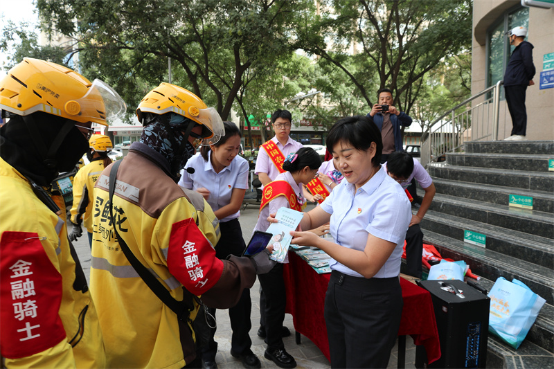 启动会现场,该行创新联动社会力量,特邀美团外卖骑手代表参会,现场授旗并为骑手代表佩戴“金融骑士”袖标。这支深入城市街巷的“高流动性”队伍,将化身金融知识“流动宣传哨”,以“送上门”的服务模式,把风险提示与金融知识融入市民日常生活,让金融安全意识触达城市每个角落。