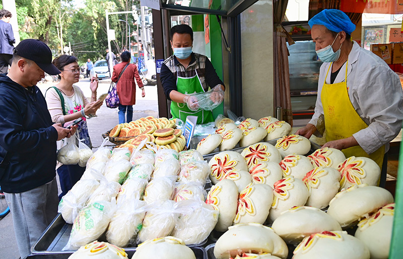 9月29日,随着中秋佳节临近,兰州五泉方鑫粮店的纯手工“千层月饼”持续热销。 新甘肃·甘肃经济日报记者 瞿娟 摄