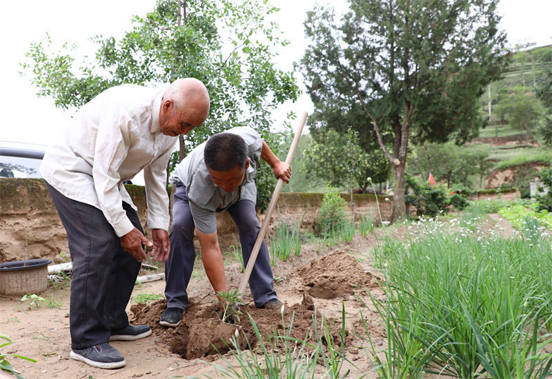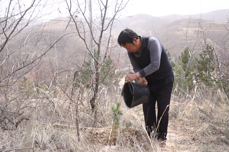 同在环县,近八旬的辛正学因身体原因,已不能像往常一样上山。他习惯每日拄着拐杖,走到环城镇漫塬村辛家台那棵老槐树下。树干需两人合抱,这是他半个多世纪植树生涯的见证。他望着熟悉的群山万壑,目光悠远。“有个苗苗就想栽。”平静的语气里,是五十年如一日的眷恋与不舍。