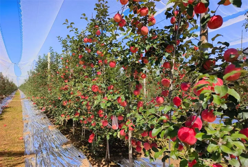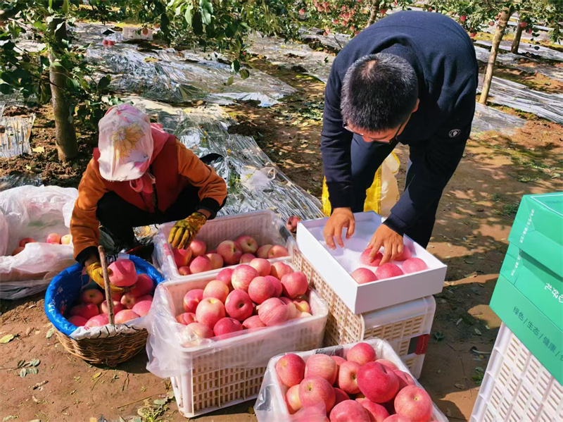 “今年雨水充足、管理到位,苹果个头大、颜色艳、口感甜,收购商早就预订好了。现在每天能采摘上千斤,收入很可观。”果农王师傅一边分拣苹果,一边笑着说。