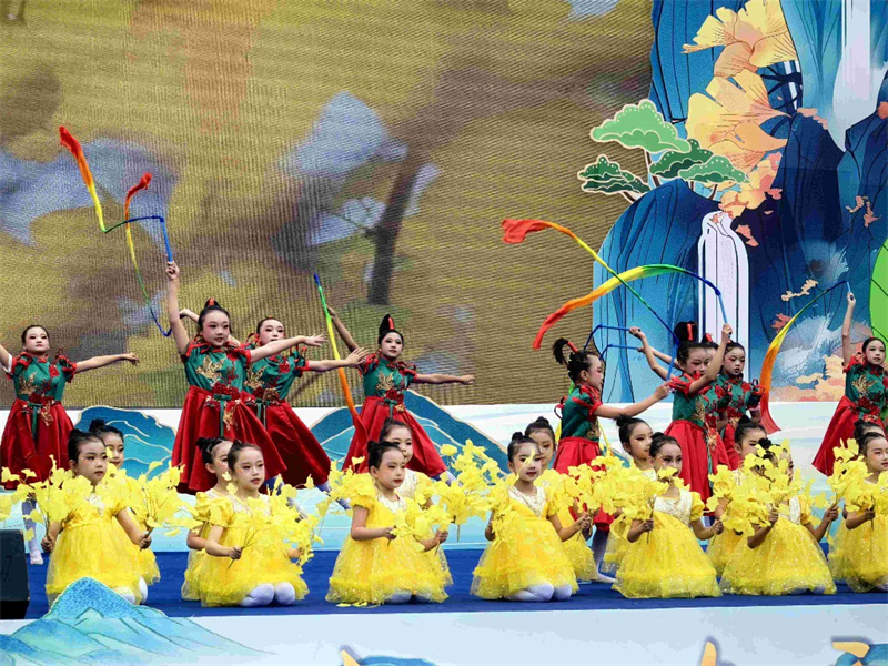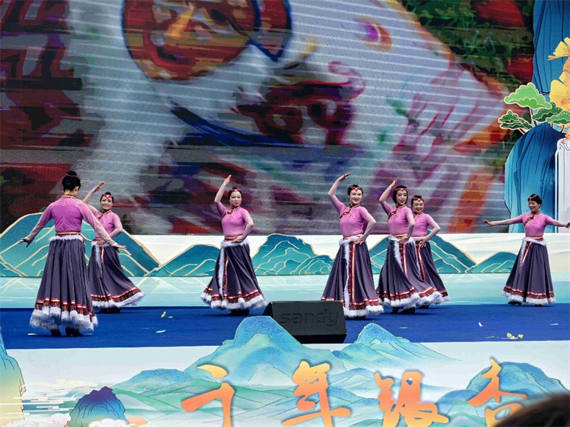 上午11时,随着激昂的鼓点响起,开场舞《鼓镇金叶天》率先登场。舞者身着金黄服饰,舞姿灵动如银杏落叶翻飞,与身后连片的银杏树相映成趣,瞬间点燃现场氛围。随后,小合唱《嘉陵谣》唱出江畔人家的烟火气,快板《徽县新韵》数说乡村振兴新变化,河池小曲《银杏树下盼君来》则用婉转腔调勾勒出古村风情……一个个充满地域特色的节目轮番上演,台下掌声、欢呼声此起彼伏,游客们举着手机记录精彩瞬间,孩童追着飘落的银杏叶奔跑,构成了一幅热闹祥和的秋景图。