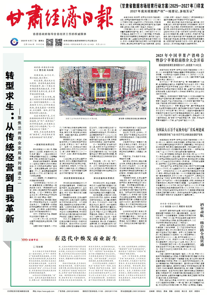 “西单商场闭店、五泉山国芳综超退场、中广·新界佰汇替代新世界百货,都是城市商业迭代的必然缩影。传统零售业若想突围,必须在数字化转型、场景体验升级、业态精准定位等方面主动探索新路径。”甘肃省城市发展研究院院长钱国权认为,未来商务部门应持续关注商业空间更新,既要为老商圈搭建转型支撑,也要重视社区商业的补位升级,通过政策引导与资源整合,助力不同区域的商业体在转型中焕发新生,进一步激活消费潜力。
