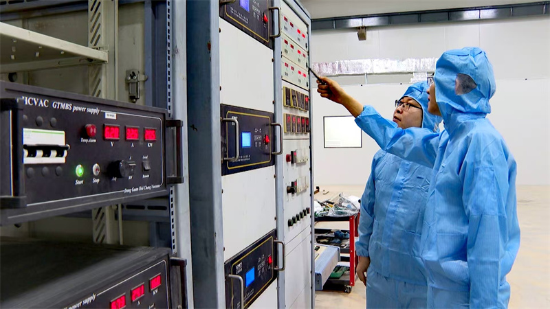 在甘肃澳森豪威智能设备制造有限公司的车间里,2台光学膜设备有序生产,呈现出一派繁忙景象。“这条是国内唯一拥有完全自主知识产权的第五代真空磁控溅射镀膜生产线,今年5月已投产接单。”景泰县2亿平方米锂动力电池复合铜箔项目负责人黄俊介绍说。该项目的铜箔磁控溅射生产线去年9月完成安装,真空蒸镀线11月中旬将安装调试,年底前两条铜箔生产线与光学膜生产线将全部投用。
