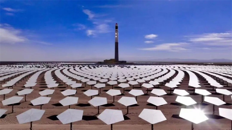位于阿克塞哈萨克族自治县的国内单机规模最大的汇东新能源“光热﹢光伏”试点项目。 安永乐 摄