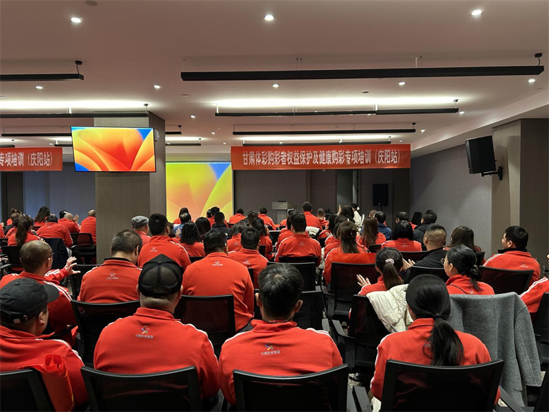 为持续提升我省体育彩票代销网点服务能力,有效识别并引导非理性购彩行为,10月23日,甘肃体彩购彩者权益保护系列活动第三场——“健康购彩守门人”专题培训在庆阳圆满完成。