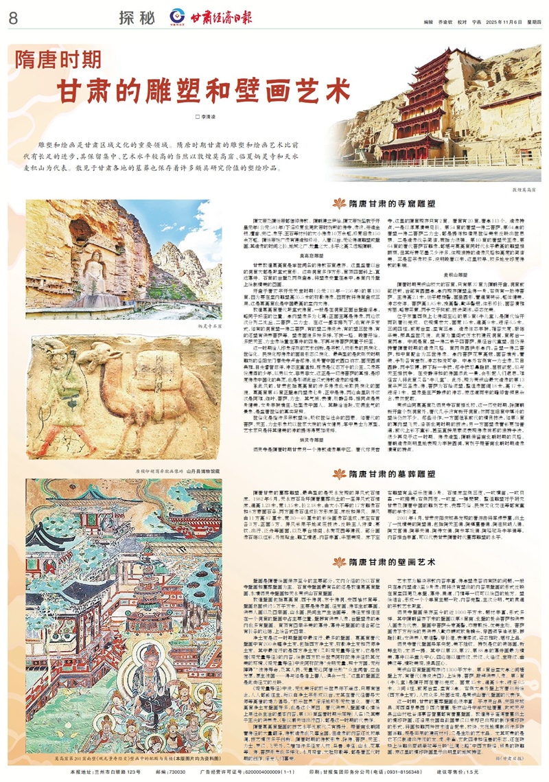 雕塑和绘画是甘肃区域文化的重要领域。隋唐时期甘肃的雕塑和绘画艺术比前代有长足的进步,其保留集中、艺术水平较高的当然以敦煌莫高窟、临夏炳灵寺和天水麦积山为代表。散见于甘肃各地的墓葬也保存着许多颇具研究价值的塑绘珍品。