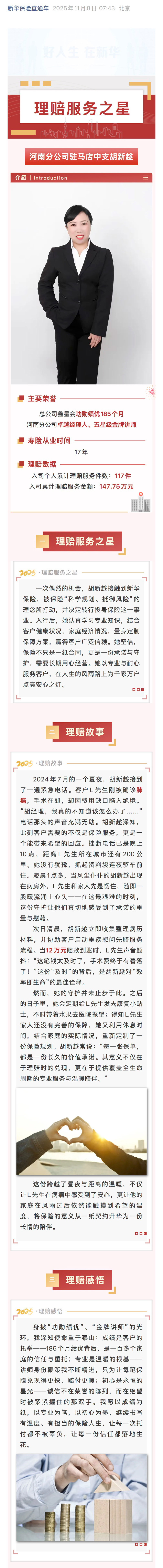 理赔服务之星(53)| 河南分公司胡新趁十七年来以专业耐心为千家万户点亮安心之灯
