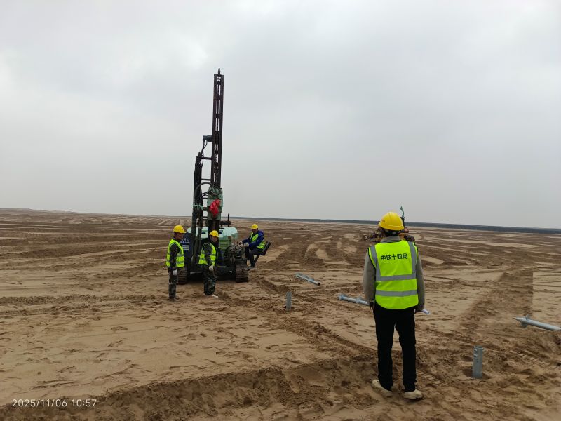 近日,在甘肃省武威市凉州区九墩滩腾格里沙漠边缘,随着第一根钢螺旋管桩(试桩)稳稳扎根地下,甘肃电投酒汇公司武威望舒100兆瓦光伏发电项目正式拉开施工序幕,从前期筹备阶段全面转入建设实施阶段,为当地光伏治沙产业发展注入全新动能。