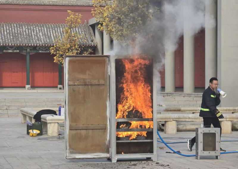 随着新能源汽车和电化学储能产业快速发展,锂电池火灾事故呈上升趋势。本次座谈会创新采用“实战演示+深度研讨”模式。上午,嘉宾观摩了锂电池火灾模拟扑救演示,上海联捷科技展示的“精准降温—惰性抑制—智能阻断”三维灭火系统,通过高压细水雾与相变材料协同作用实现秒级火情阻断。