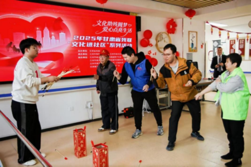 甘肃经济日报兰州讯(新甘肃·甘肃经济日报记者 牛占虎)11月13日,以“爱心点亮生活·文化助残圆梦”为主题的2025年甘肃省残联“文化进社区”系列活动,在兰州市城关区草场街街道庙滩子社区残疾人日间照料省级示范中心举行。百余名来自草场街街道庙滩子社区、东岗西路街道平凉路社区和东岗西路街道一只船社区的残疾人朋友在其家属、社区志愿者的陪伴下,愉快地度过了一个爱意融融的多彩时光。