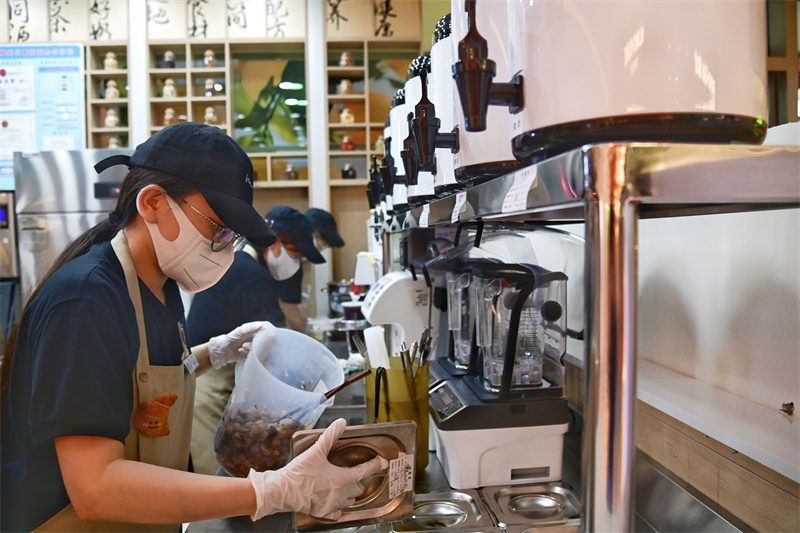 位于兰州市中山路的甘肃放哈餐饮管理有限公司旗下连锁茶饮品牌“放哈”门店前,游客常排长队抢购甜醅子奶茶。上海游客陈雨桐感叹道:“这酒酿颗粒的口感太绝了,在其他地方根本喝不到。”不远处,佛慈茶馆(佛慈制药旗下品牌)的“卿卿桃花饮”以黄芪、当归为原料,吸引着众多养生游客。