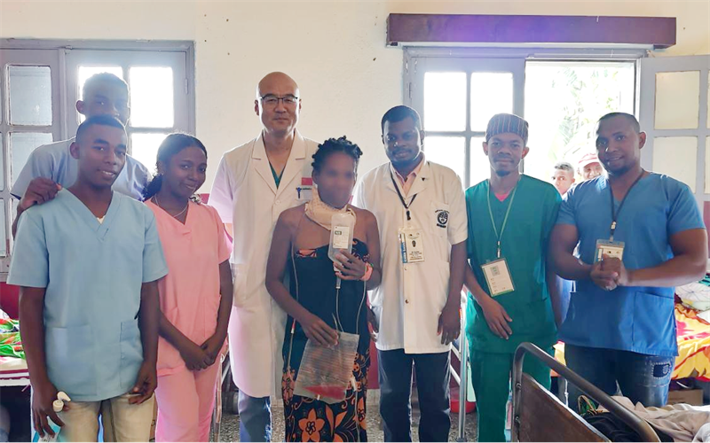 桑巴瓦市位于马达加斯加东北部,80%的人口以农业为生。这里土地肥沃、物产丰富,但医疗条件极为落后,经济严重依赖外援。在受援医院工作的两年间,强尧生直面医疗资源短缺的困境,凭借精湛医术攻坚克难,成功完成巨脾切除、肠道肿瘤根治、消化道穿孔修补、肝脾破裂急救等各类手术。更令人振奋的是,他开展了巨大甲状腺肿瘤切除、乳癌淋巴结清扫、高位肠瘘修复等高难度手术,实现了受援医院相关手术零的突破,赢得当地医生和患者的高度赞誉。