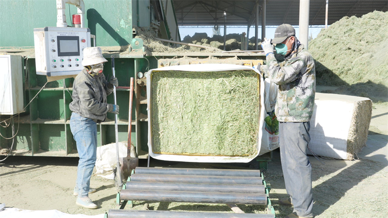 程宸农牧的建设现场同样繁忙。钢结构库房已初具规模,钢筋如密实的“网格”般交织,工人们正在加紧固定构件、铺设顶棚;生产区内,打包成块的苜蓿不断从机器中送出,被工人熟练地转运至仓储区。通过项目扶持,该公司年加工能力将从4000吨提升至7000吨。