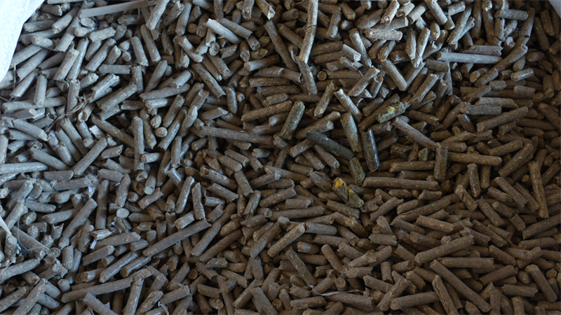 走进敦宝农牧生产车间,成捆的农作物秸秆原料经传送带送入粉碎机,迅速被打碎成细小碎屑,再通过高温高压设备压制成饲料颗粒。