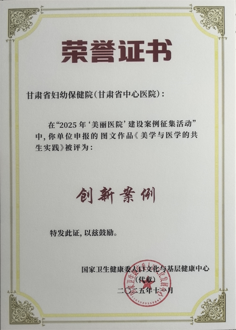 甘肃经济日报兰州讯(新甘肃·甘肃经济日报记者王耀)近日,2025年“美丽医院”建设经验交流活动在浙江省湖州市举行,甘肃省妇幼保健院(甘肃省中心医院)凭借《美学与医学的共生实践》案例,再度斩获全国“美丽医院”创新案例大奖,这标志着该院以“美学”为核心的发展模式,获国家级持续高度认可。