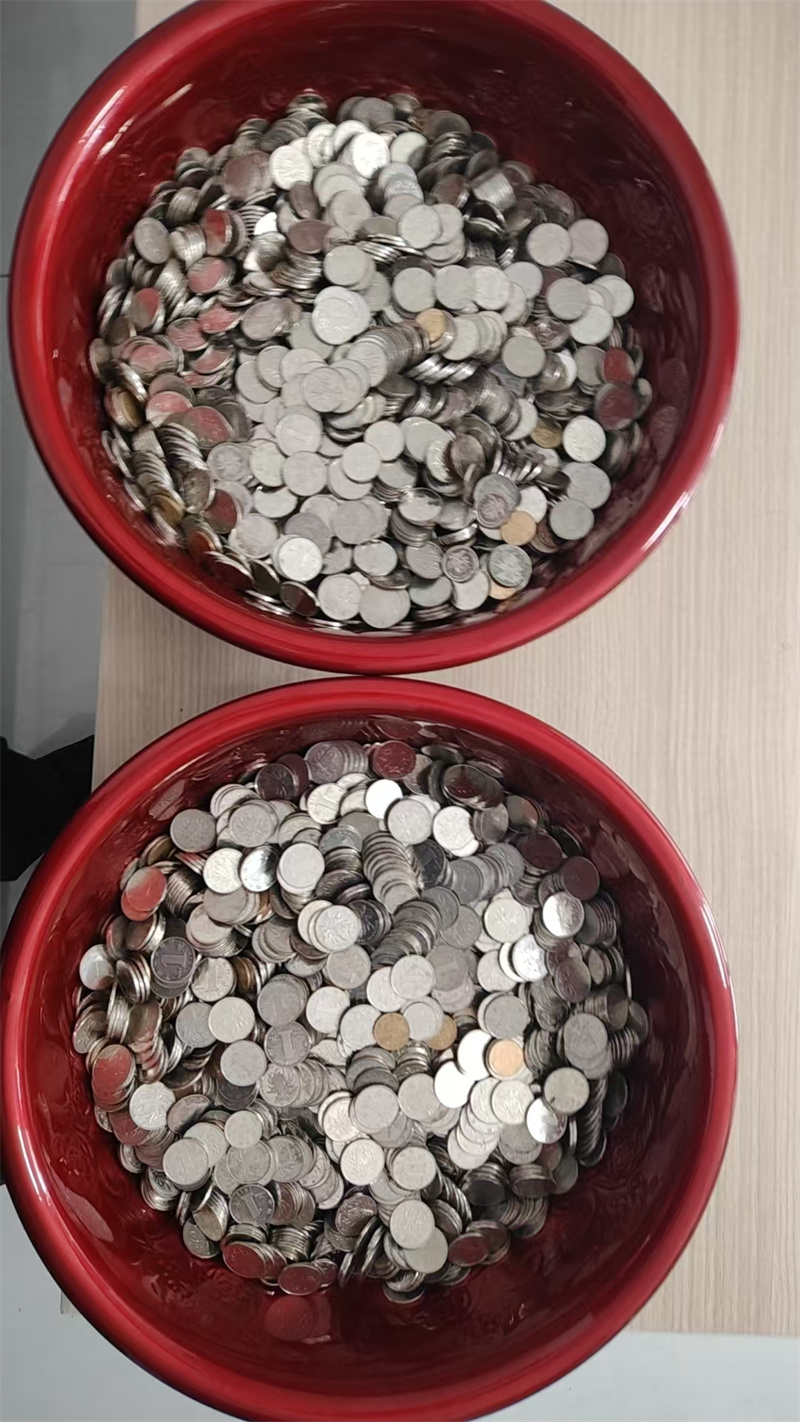该客户因经营需求,积累了大量1元、5角面额硬币,需兑换为纸币便于日常结算。考虑到硬币数量庞大、清点耗时,客户此前曾咨询多家机构均未得到满意答复。农行镇原支行网点工作人员接到咨询后,第一时间向网点负责人汇报情况,随即制定专项服务方案:一方面预留专属服务窗口,调配3名业务骨干组成临时清点小组;另一方面启用专业硬币清点设备,结合人工复核的方式,确保清点准确无误。