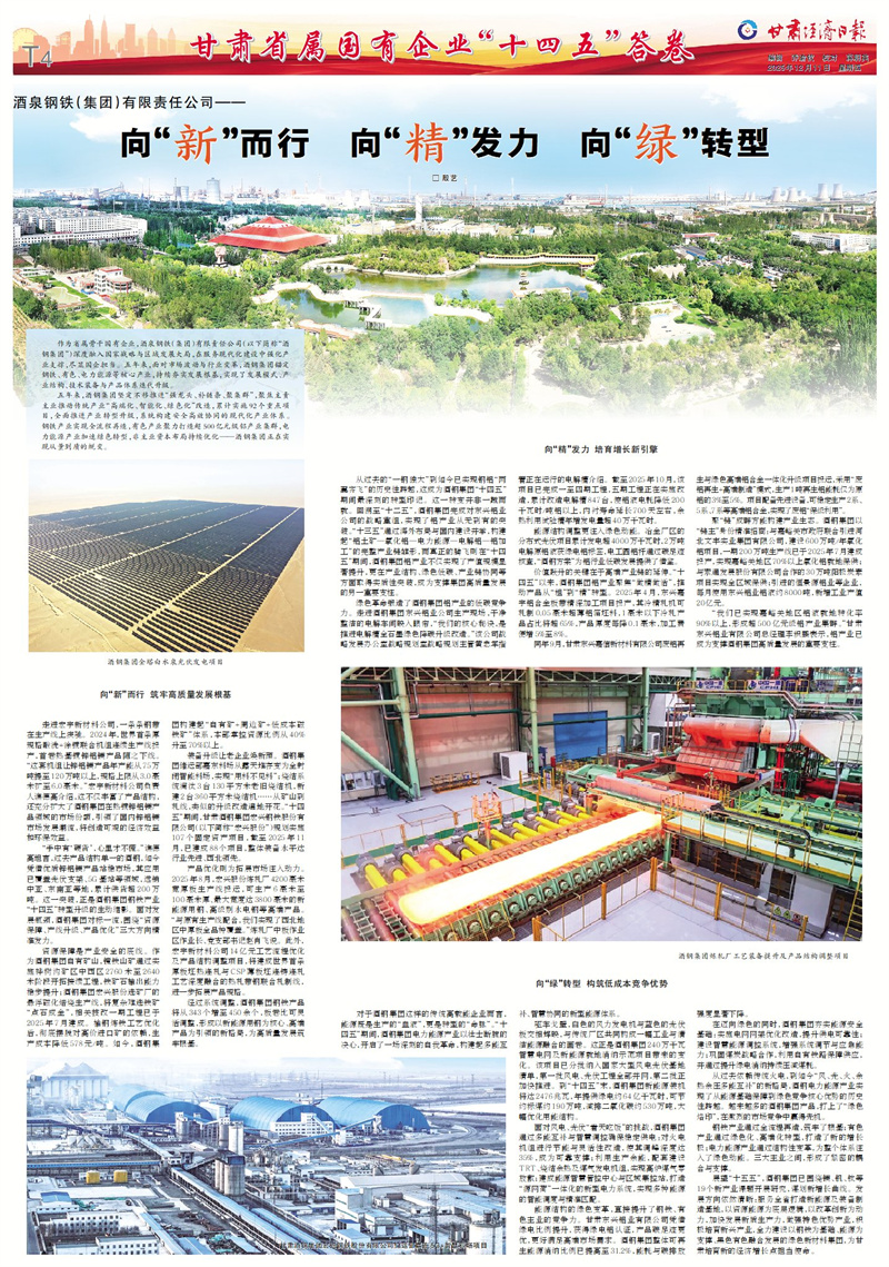 “手中有‘硬货’,心里才不慌。”谯德高坦言,过去产品结构单一的酒钢,如今凭借优质锌铝镁产品站稳市场,其应用已覆盖光伏支架、5G基站等领域,远销中亚、东南亚等地,累计供货超200万吨。这一突破,正是酒钢集团钢铁产业“十四五”转型升级的生动缩影。面对发展瓶颈,酒钢集团对标一流,围绕“资源保障、产线升级、产品优化”三大方向精准发力。