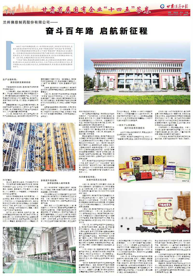 在兰州佛慈制药股份有限公司(以下简称“佛慈制药”)佛慈堂企业文化展厅里,一系列兼具传统底蕴与科技创新的中药产品整齐陈列,彰显着企业强劲的研发创新实力;生产车间内,智能化数控装备高速运转,成为企业提质赋能的核心支撑。应变于新,是佛慈制药在行业变迁中勇立潮头的秘诀。