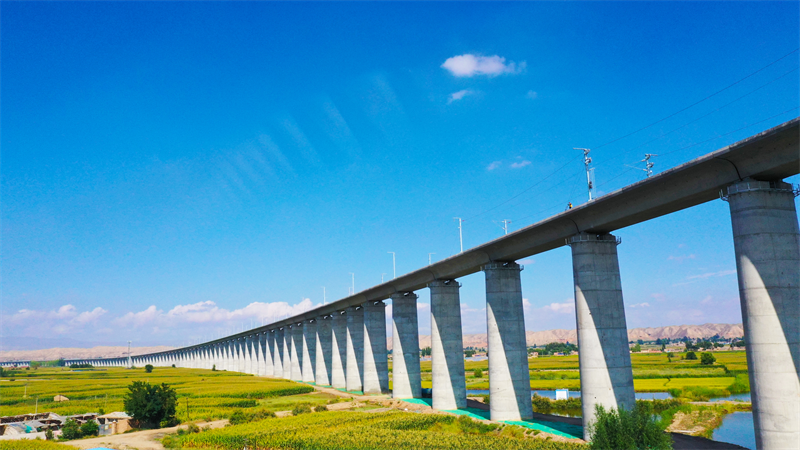 甘肃铁投集团投资建设的银兰高铁甘肃段靖远黄河特大桥
