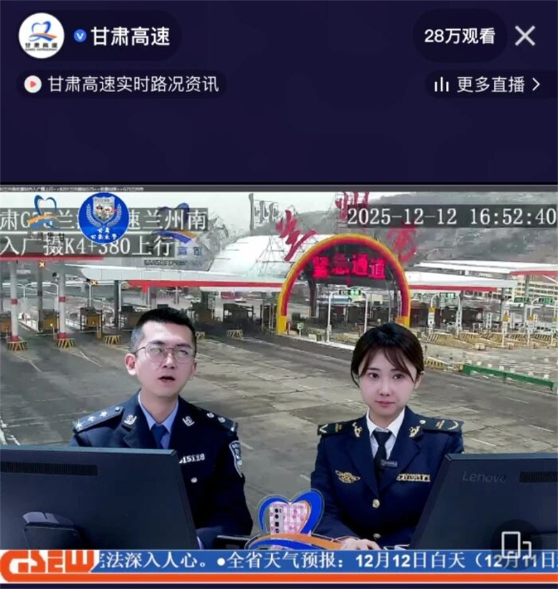 通过甘肃高速“两微一端”、新媒体平台、沿线电子情报板等渠道,实时发布路况、天气、交通管制、安全提示等信息,引导公众提前规划行程,注意行车安全,切实提升出行服务质效。联合交警部门开展恶劣天气“路警”联播,邀请交警走进甘肃高速直播间,实时解答公众疑问,直观呈现道路实况,增强司乘人员对通行环境的感知,及时收集并回应群众诉求。(何海林 苏海琴)