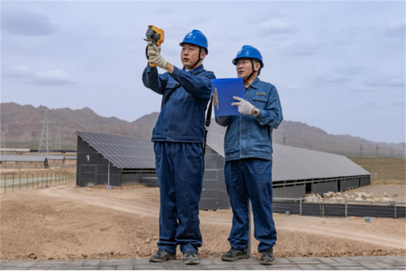 “感谢你们定期帮我们检查光伏发电设备,这个月我们引进了1000只育肥羊,养殖棚上面发电、下面养殖,不仅提高了土地利用率,还能每年为电网提供清洁电,真正实现了双赢。”