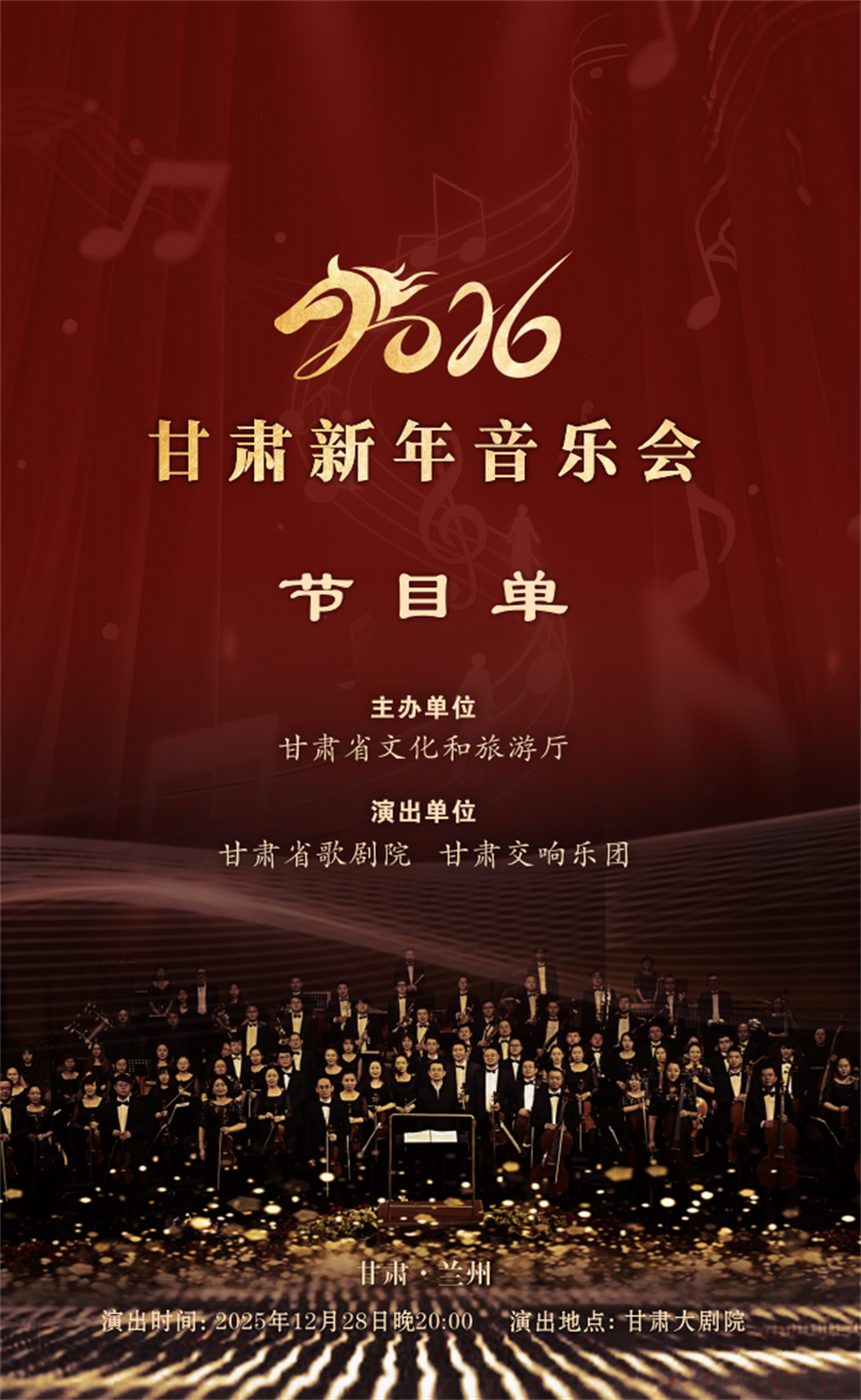12月28日晚,由甘肃省文化和旅游厅主办、甘肃省歌剧院与甘肃交响乐团联合承办的“2026甘肃新年音乐会”,将在甘肃大剧院精彩上演。