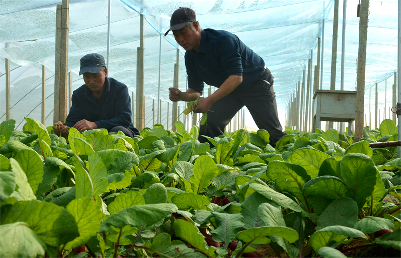 近年来,新龙村锚定“一村一品”发展方向,推进大棚水萝卜连片种植,让“水人参”成了村民增收致富的特色支柱产业。“一个大棚一年能种三茬菜,今年我种了西红柿、水萝卜和黄瓜,一个棚每年平均收入六七万元哩。”70多岁的新龙村村民李友福一边侍弄菜苗一边感慨道,“一年的好收入全靠这个大棚了。”
