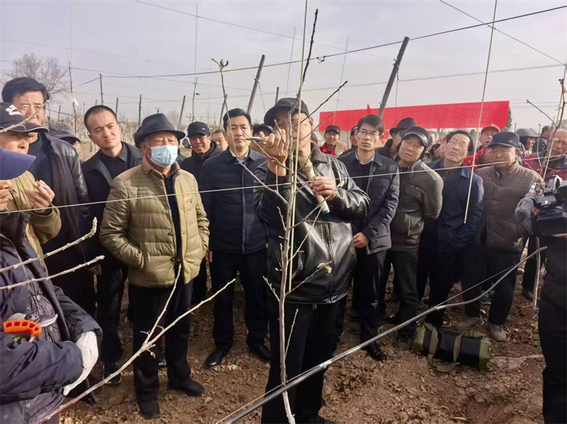 冬至过后,泾川县窑店镇60名果农齐聚峪头村矮化密植示范园,围绕冬季修剪技术展开了一场技术大比武。