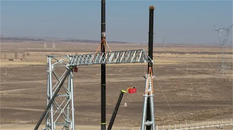 国网甘肃电力对本次吊装作业科学筹划、精准施策,制定周密施工方案。作业现场调配600吨、400吨及200吨等大型起重机协同作业,根据构件重量与就位位置灵活分工,形成高效流水作业模式,既降低安全风险,又优化工序衔接、节约施工时间。