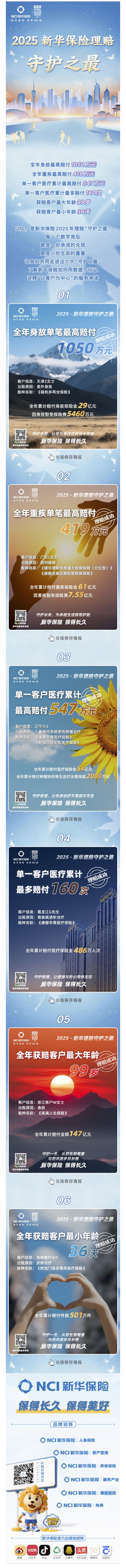 单一客户最多赔付160次!6张图看新华保险2025年理赔守护之最