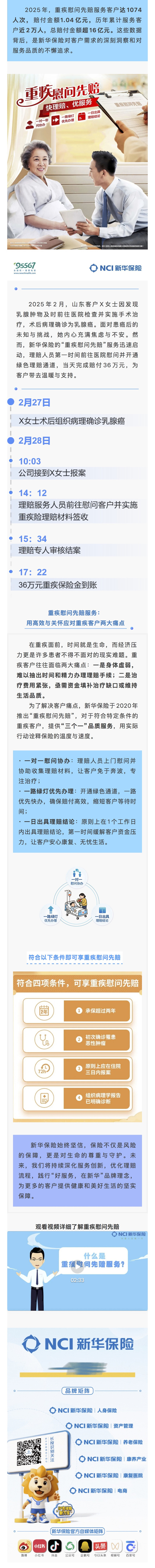 数说理赔 ⑥丨新华保险重疾慰问先赔服务:2万次暖心关怀,16亿元安心保障