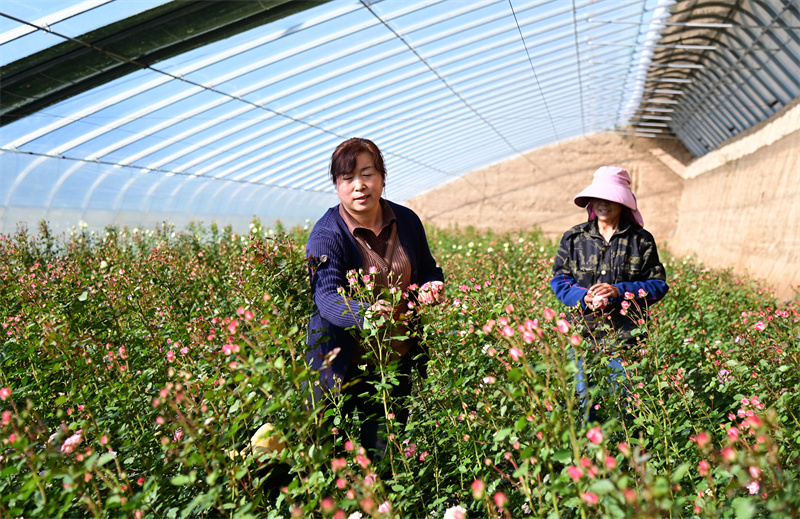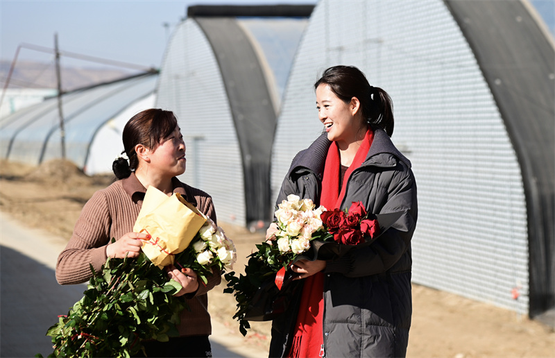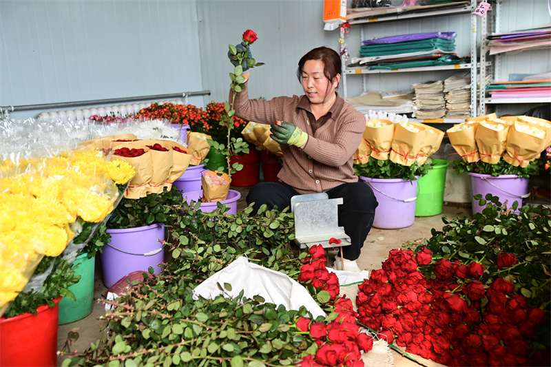 1月15日,兰州市榆中县夏官营镇满福蔬菜种植专业合作社鲜花种植基地内,花农正在采摘鲜花。时下,各类鲜切花集中上市,迎来销售旺季。 新甘肃·甘肃经济日报记者 瞿娟 摄