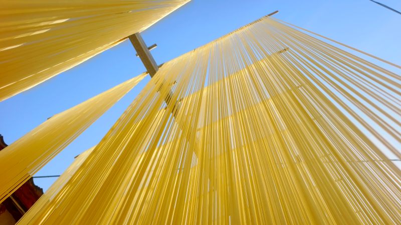 元旦过后,徽县各地的年味渐渐浓了起来。作为平时餐桌上必不可少的佳肴,当地手工挂面逐渐火热起来。暖阳下,一座座农家院落里,细长的挂面随风摇曳,沾满了浓浓的乡愁。