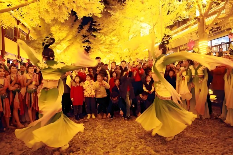 夜幕降临,天水古城灯火璀璨,青砖黛瓦与红灯笼交相辉映,非遗展演、特色小吃、文创市集热闹非凡,来自全国各地的游客穿梭其中,感受千年古城的独特魅力。