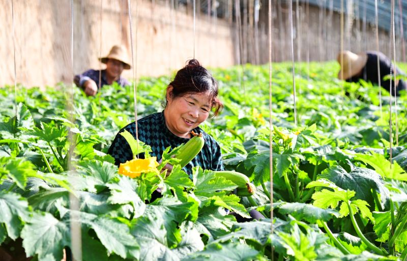 榆中县城关镇李家庄村的日光温室大棚里绿意盎然。茄果类、瓜类等品类蔬菜陆续成熟,农户们抢抓农时采收、分拣,新鲜果蔬源源不断地运往市场。错峰上市的种植模式既精准保障了节日市场供应,也让农户收益满满。