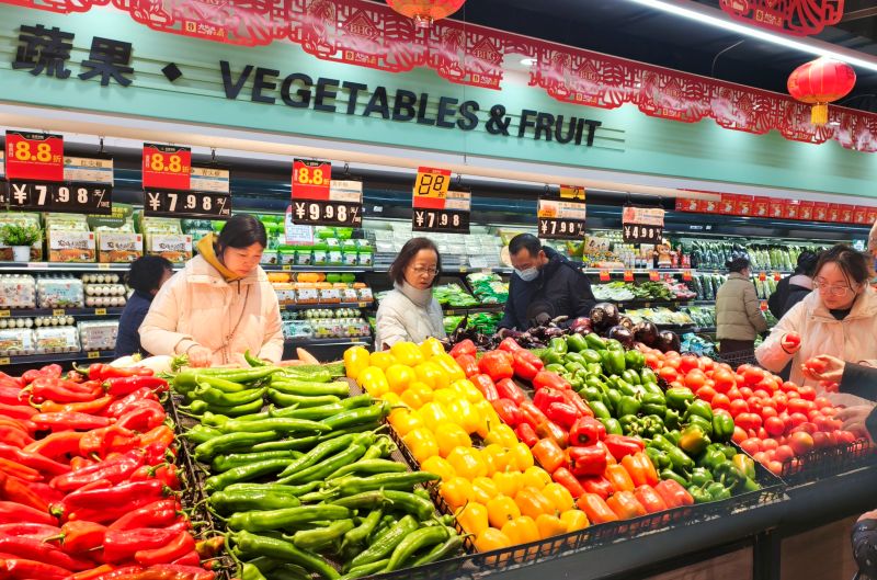 市民在兰州一家超市内选购蔬菜。春节临近,兰州各大商超货源充足、品类齐全。