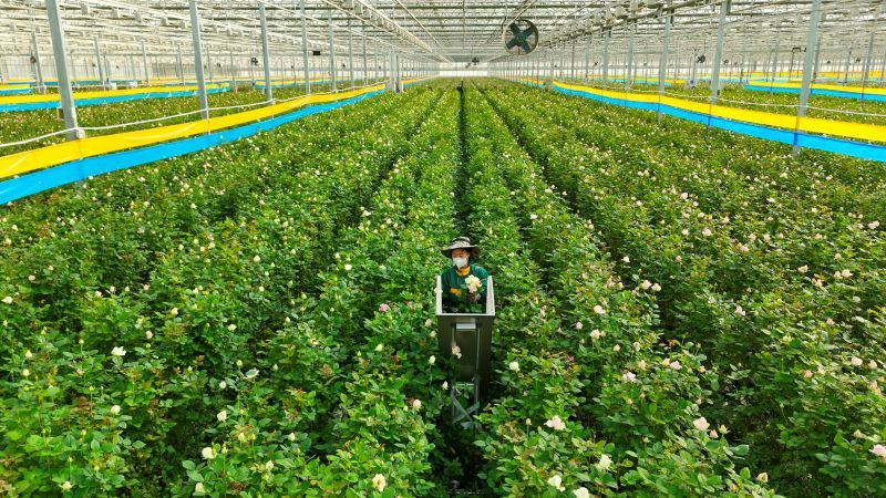 兰州新区现代农业示范园花卉产业基地内,玫瑰花竞相开放,工人们忙着修剪、包装,基地依托“线上+线下”销售模式,所产鲜花不仅畅销国内70余个城市,还远销海外市场。