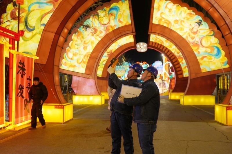 国网敦煌市供电公司员工在2026敦煌灯会上巡检。王娜 摄
