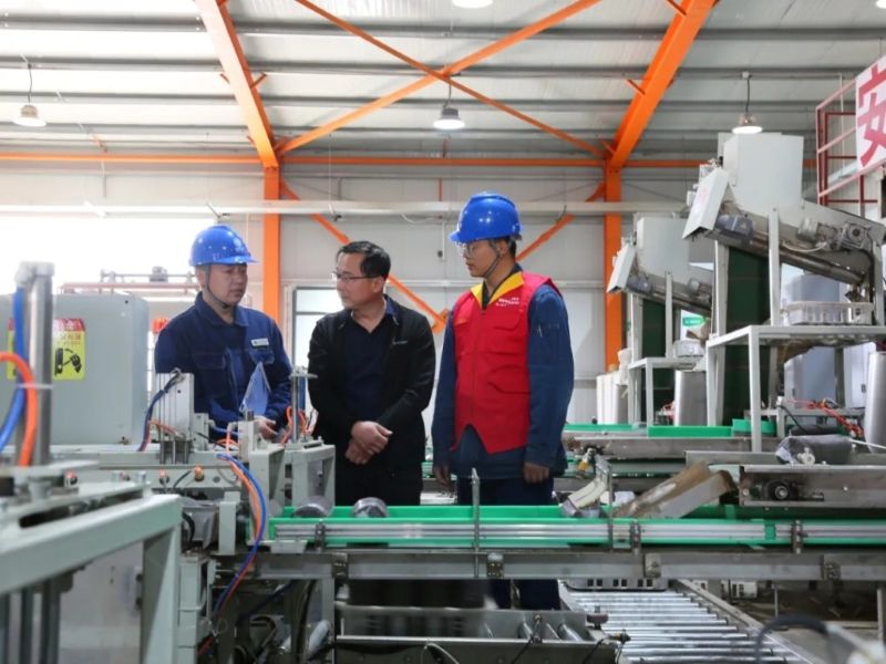国网静宁县供电公司电力员工走进静宁时代科技有限公司车间进行电力安全隐患排查与用电技术指导。 李春莲 摄