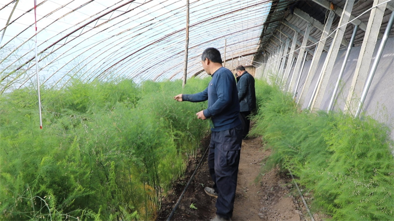 “当地昼夜温差大,种出的芦笋品质优良。大棚种植管理便捷、劳动用工少,第一年收入相对较低,第二年以后产量增加,收益明显提升。我们的芦笋先运至武威,再整体打包发往南方地区销售,销路不用发愁,行情好时每个棚年收入能达到1万元以上。”张泉说。