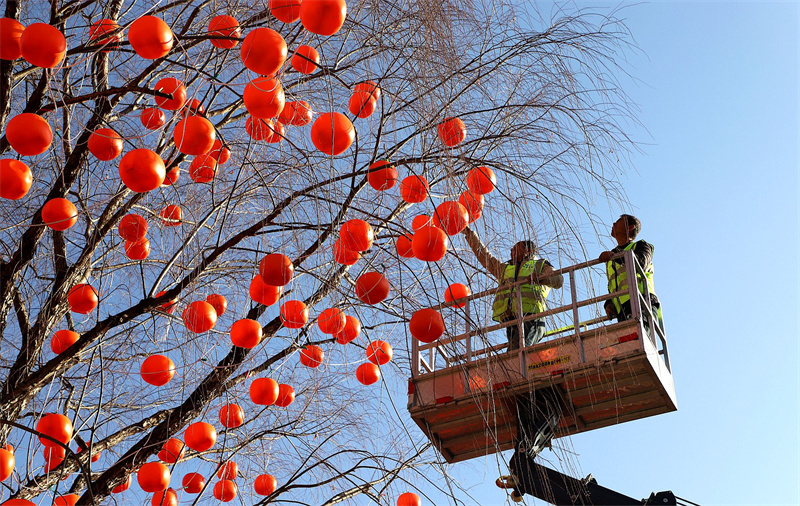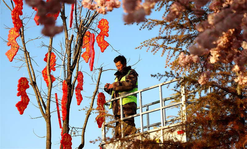 眼下,轩辕湖内一派繁忙景象。工作人员身着工作服,手持工具,有条不紊地开展接电线作业,仔细检查线路、对接接口,确保每一盏灯笼、每一组灯饰都能安全点亮。“为了让清水县年味更浓、颜值更高,县住房城乡建设局提前部署、加紧施工,给城区挂上喜庆灯笼,用红火景致传递新春祝福,切实提升群众的幸福感、获得感,让大家在祥和氛围里迎新年。”清水县住房城乡建设局轩辕湖管理办公室主任刘刚说。