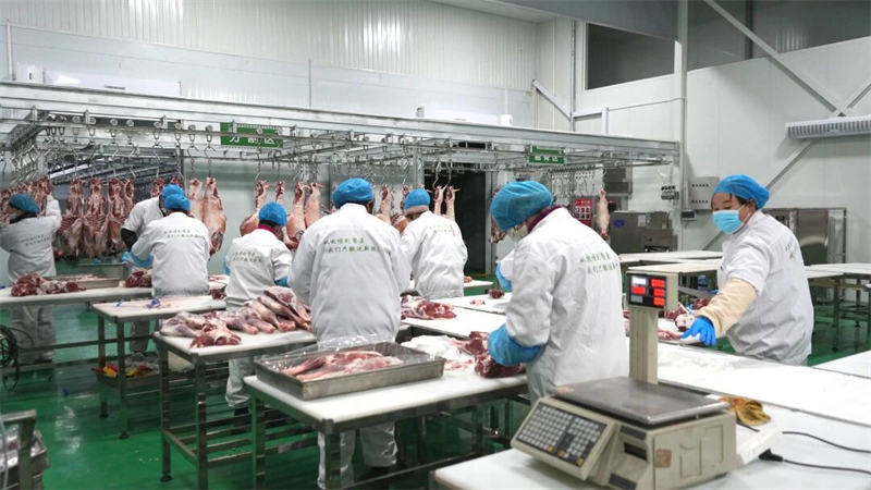 在肃南裕固族自治县雪雲农牧发展有限公司现代化精深加工车间内,工人们有条不紊地进行分割、检疫、打包,高档冷鲜肉、小包装分割肉、专用涮煮肉片等多元化产品一应俱全,年加工清真牛羊肉可达800余吨,年产值超5000万元,同时带动100余名农牧民实现家门口就业。